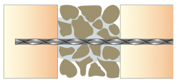 Installation: 1. Drill a 10mm pilot hole through the outer leaf and 55mm into the inner leaf. Clear both holes of debris using blowing and brushing. 2. Inject polyester resin into the inner leaf using the nozzle extension. 3. Push through the outer leaf and into the inner leaf. Hand support tool available if required. 4. Inject resin over the tie into the outer leaf. 5. Make good the tie at the surface with matching mortar.