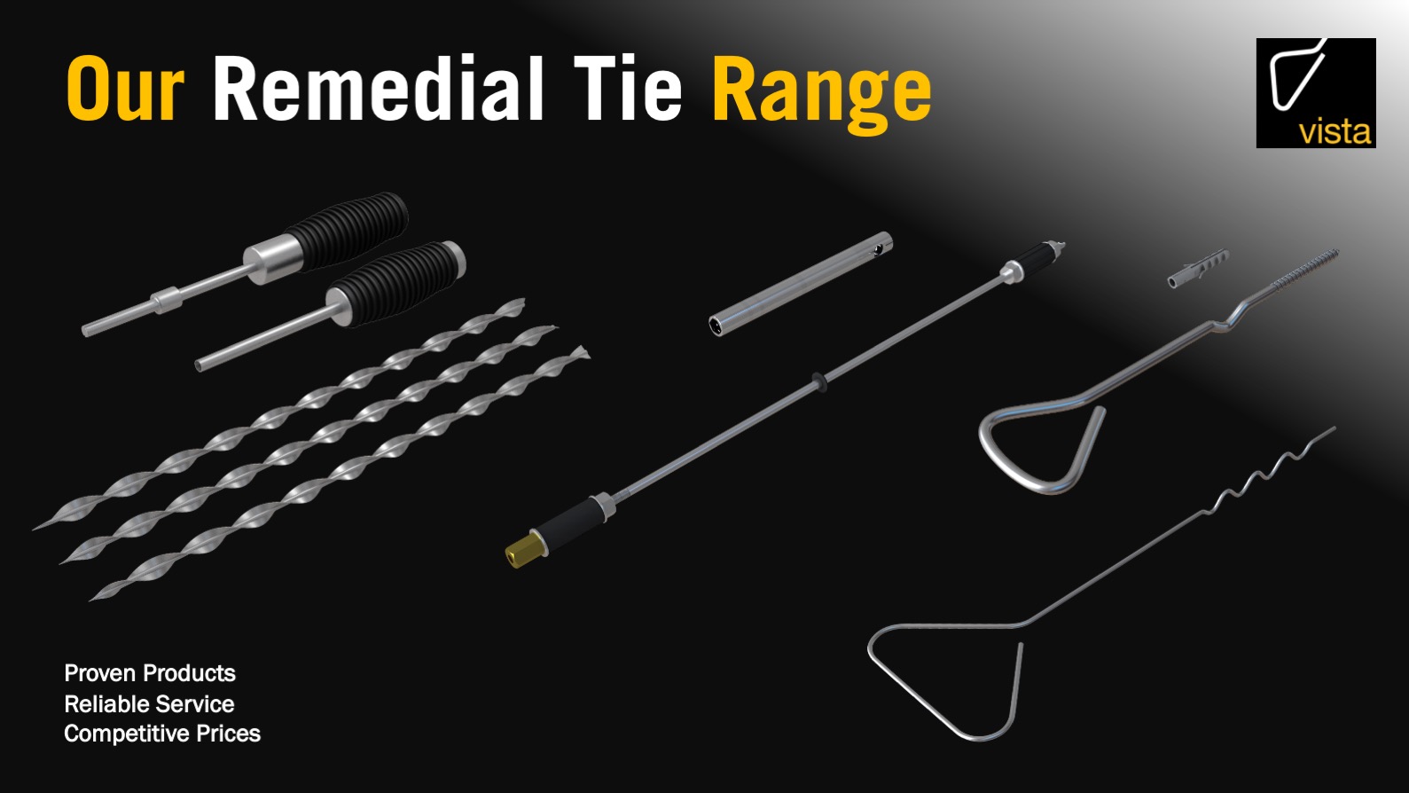 Vista offer remedial wall ties to address two common issues; failed cavity walls and poor performing single leaf walls.