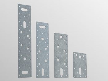 A range of pre-punched flat connectors suitable for many timber to timber, masonry or steel applications. Manufactured from 2.5mm thick galvanised steel as standard. Stainless steel also available.