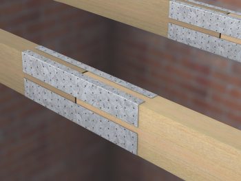 The Splice Plate offers an economical on-site method of butt jointing timbers of similar section. Suitable for use when replacing rotten floor joist ends, replacement of fire damaged timbers and repairing localised structural timber damage. Manufactured from 0.9mm thick steel. Must be fixed in sets of 4 per joint, minimum timber thickness of 50mm.