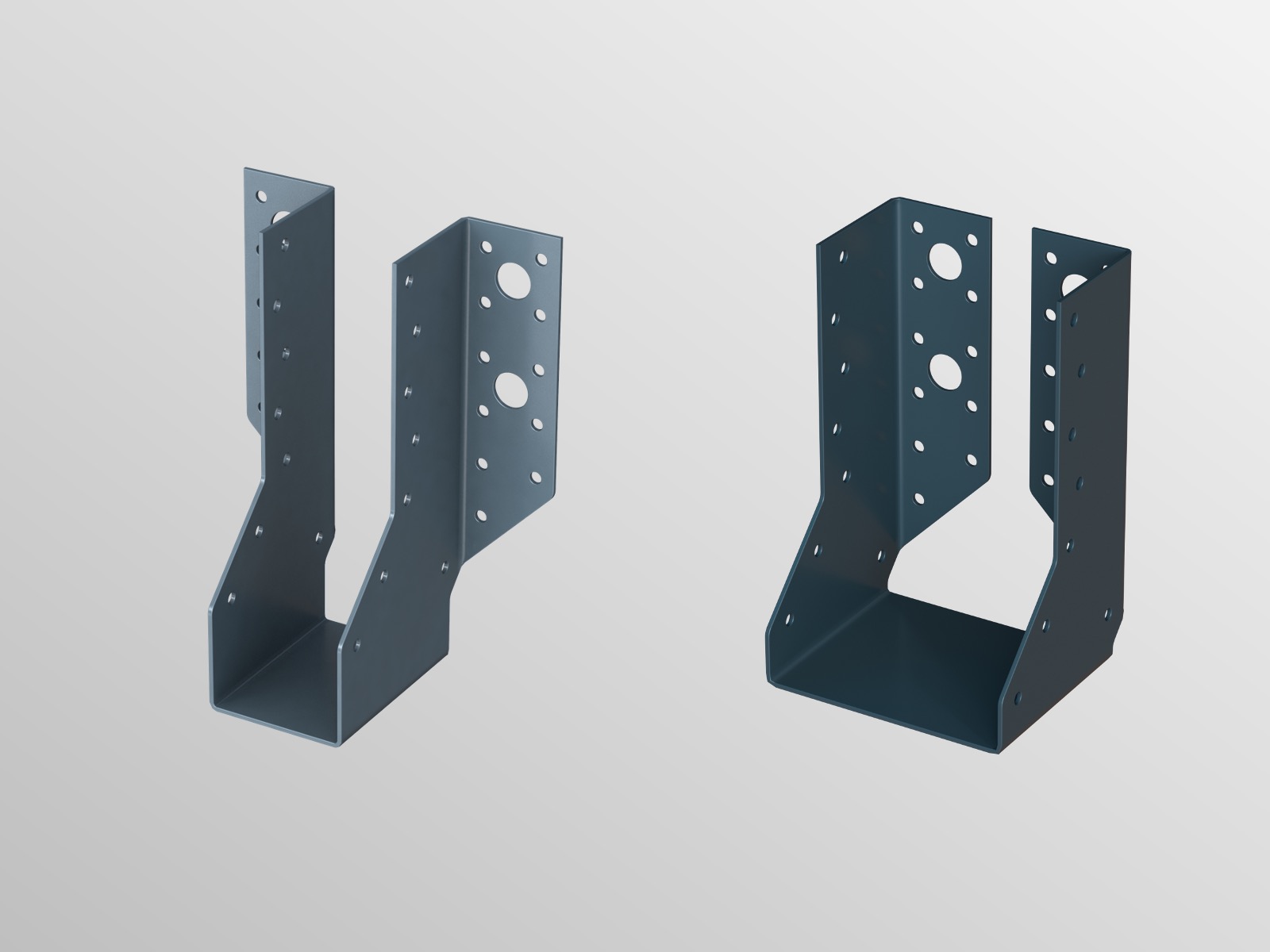 For use in heavy duty applications such as multiple truss units, main trimmer joists, purlin to beam connections or similar situations where unusually heavy loads occur. Also available as GC-MTH/CF/380 with face plates folded inwards for concealed fixings.