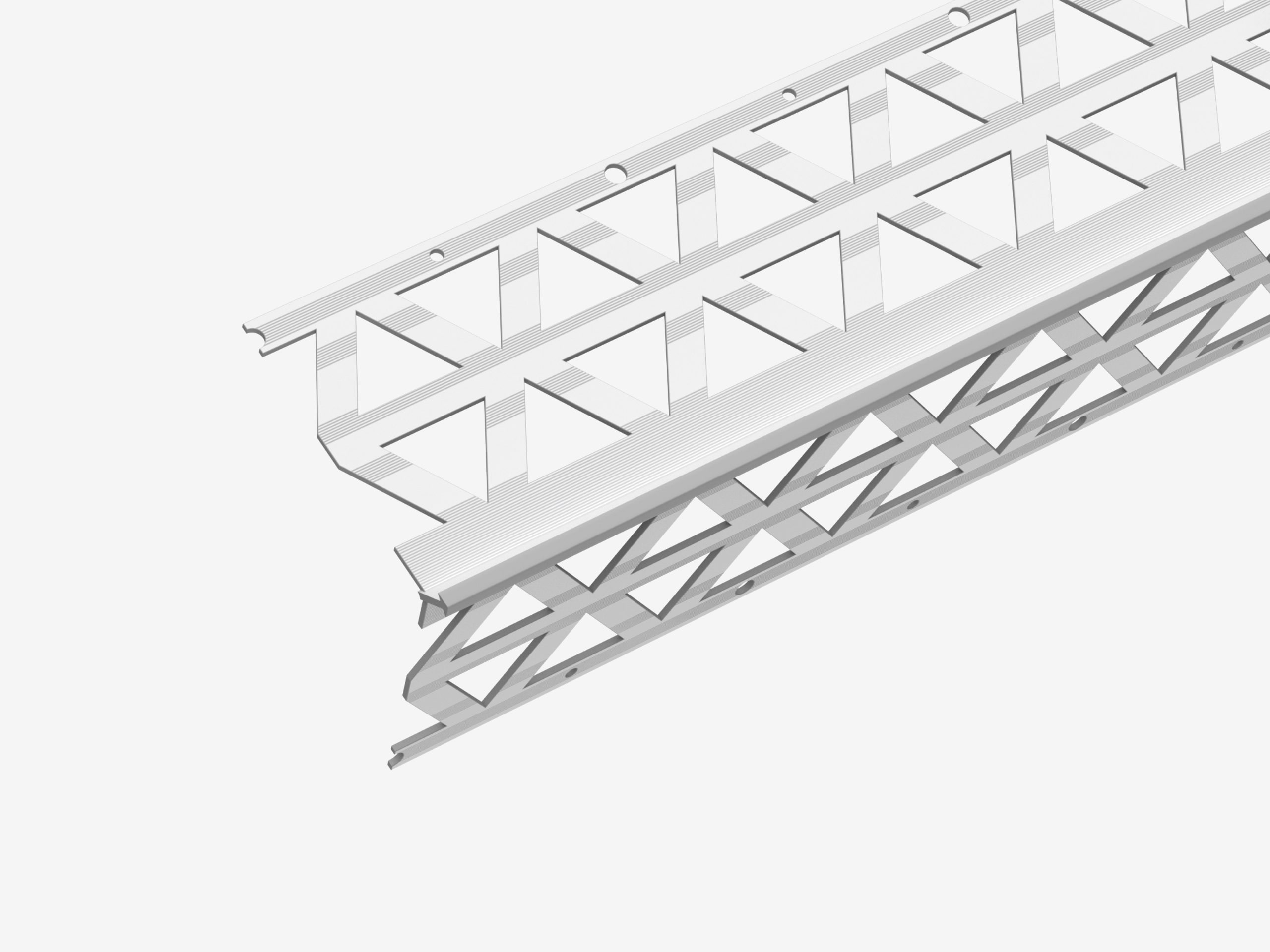 PVC-u beads are now being used more and more, particularly in areas of high rainfall or extreme damp conditions. They provide an economical alternative to stainless steel products and are used in the same way as normal galvanised or stainless steel beads. They are manufactured from white high density polyvinylchloride high impact window grade material. Other colours are available and manufactured to order. The face of the bead is ribbed and perforated to produce a good plaster or mortar key and can be easily cut to size using a hacksaw.